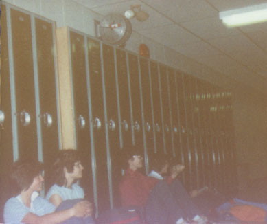 From left to right : George (standing), Greg, Wade, Dale, Bruce (cheering), Pat and Barry..