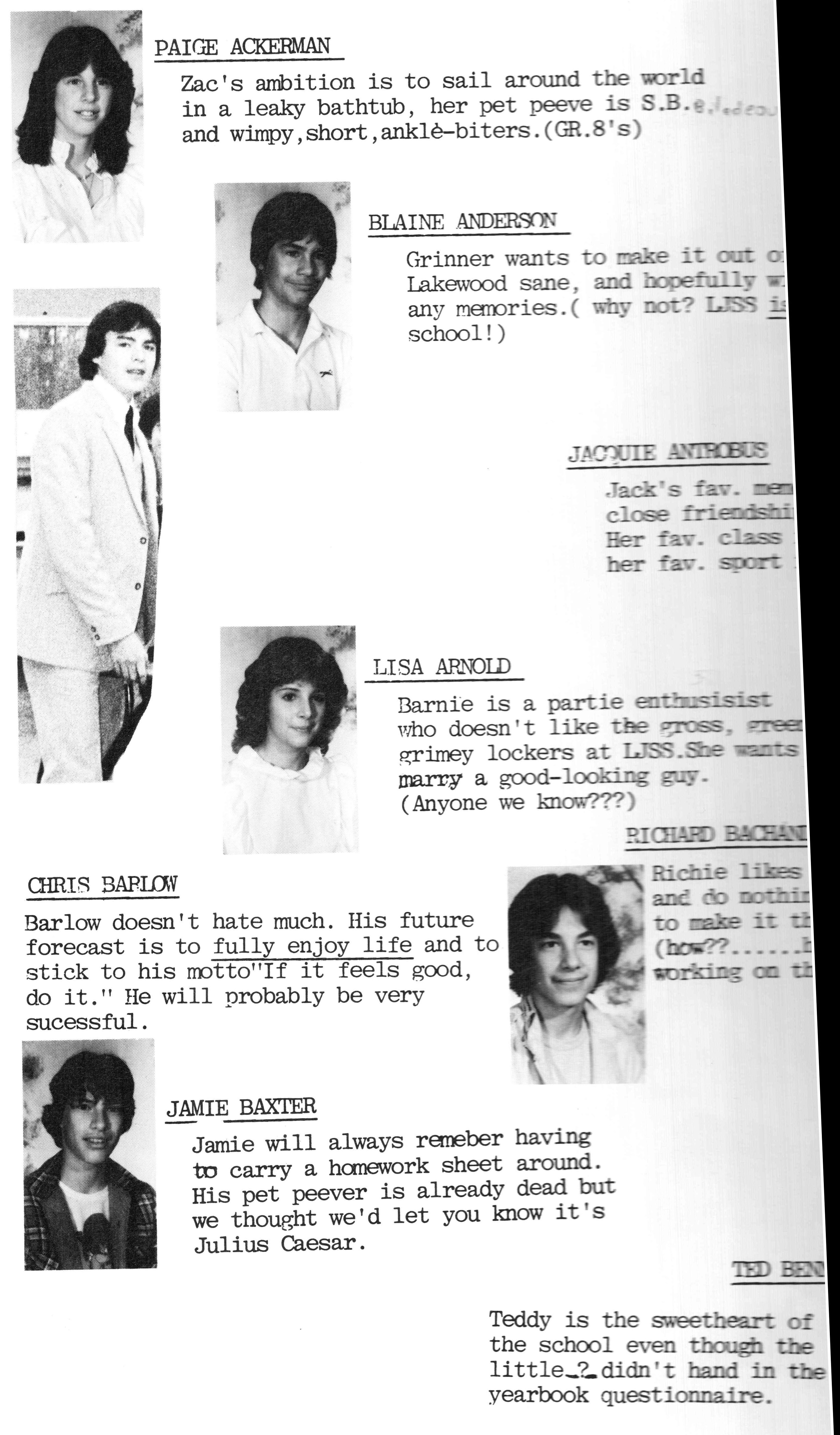 From left to right : Jacquie, Wendy, Deanna, Laurie (who was the yearbook editor).