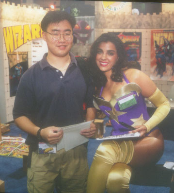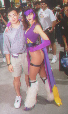 Sheldon was being the sly bastard this con. He was carrying his camera along and getting his picture taken with various model cos-players on the con floor. The lucky bastard was getting his shot taken, the model moved his hand so it cupped her breasts. Unfortunately, the time it took the cameraman to focus and snap the picture, she moved it away again. Yea, going for the free feel there...