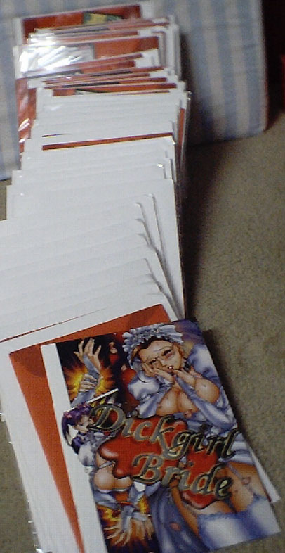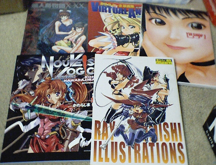 Dragonball Z collectors cards, Yuna Cards, Devilman Lady cards, and Sailor Moon, and Card Captor Sakura. He use to have a good selection of smut art books but he says that storm is better for that stuff.