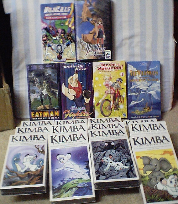 I found some guy selling 7 tapes of Kimba for $15 each. I told him that ADV was selling them for $10. so he lowered his price. He also a copy of the Brainpowered 4 I needed. I also doubled back to the USMC booth for the $15 live stuff. So I picked up 3 movies from Kei Mizutani. I also mananged to fined the Dojin 2000 booth selling their usual Sailor Moon and 7 Ballz as well as smut dojins.