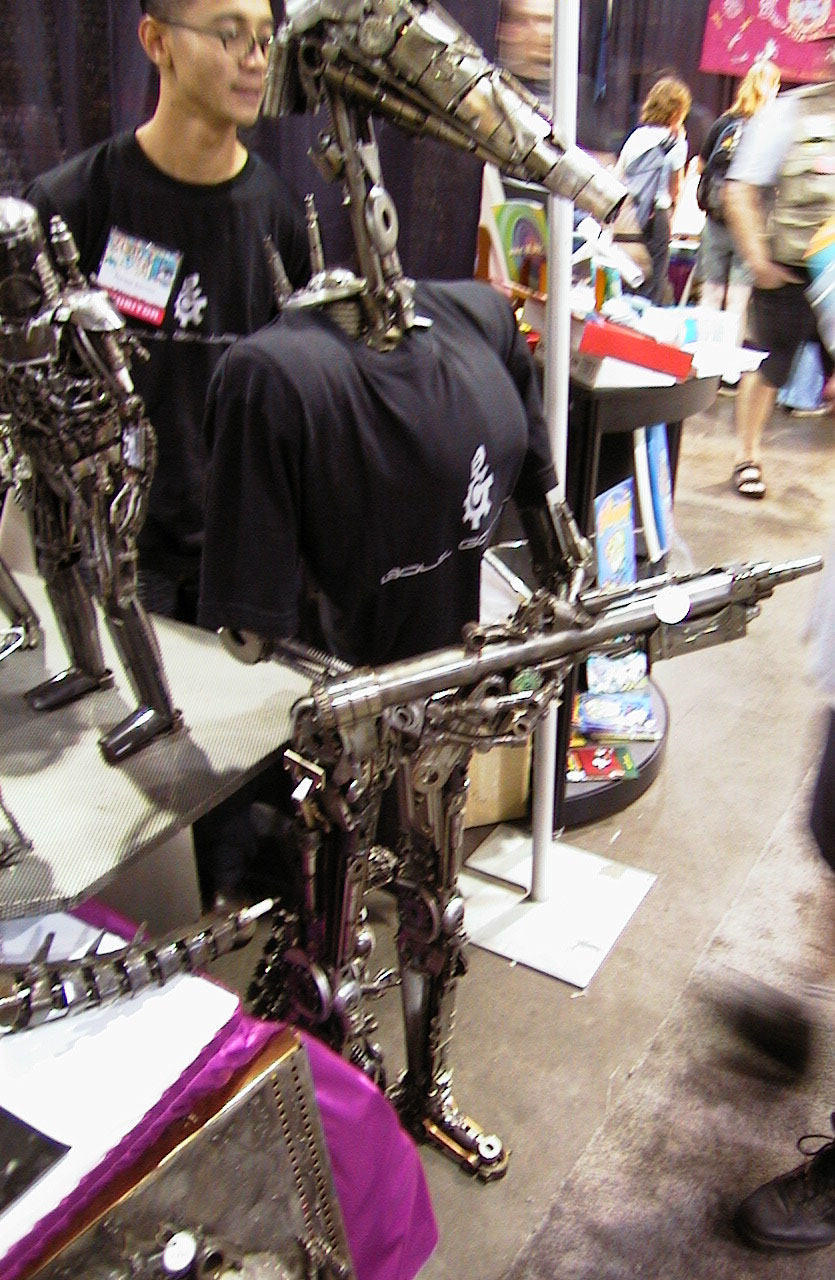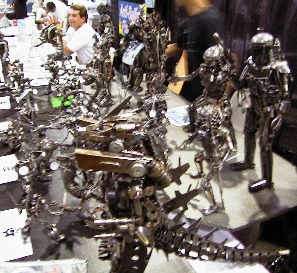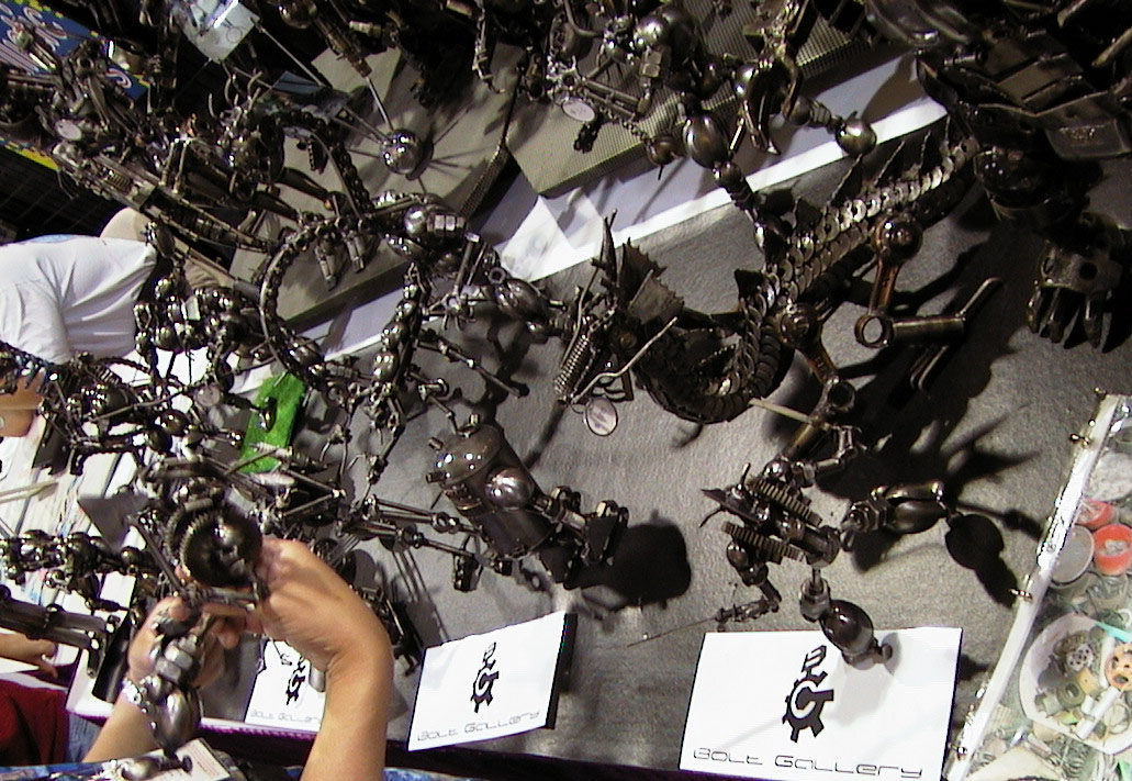 600 Jones Bones - swords and weapons Mr. T joke toy where you press a button for making Mr. T lines. Anime Jungle - All their booth was Sentai DVDs and LDs and Soundtracks. Tentacle Master Alan would have loved it here. Bolt Gallery - a guy built mechas like Space Hulk guys, Star Wars mechas and other machines all built out of garage bits like bolts, nuts, washers, bike chains and nails. Quite cool. |