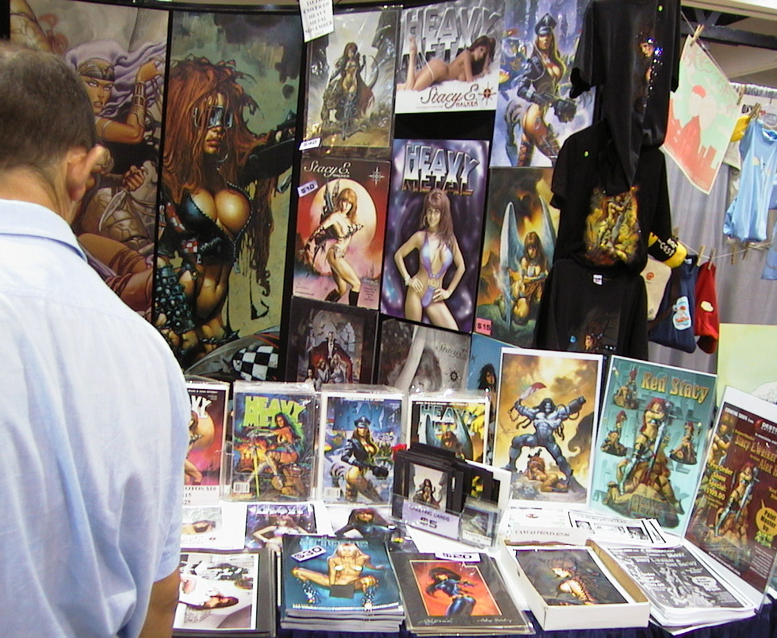 1400 Heavy Metal booth heavy_metal.jpg heavy_metal2.jpg XXXtreme Stickers - nudes and almost nudes of Marylene Monroe, Vampirella and etc... Avatar comics - big poster of 10th muse that they were selling for $2. |