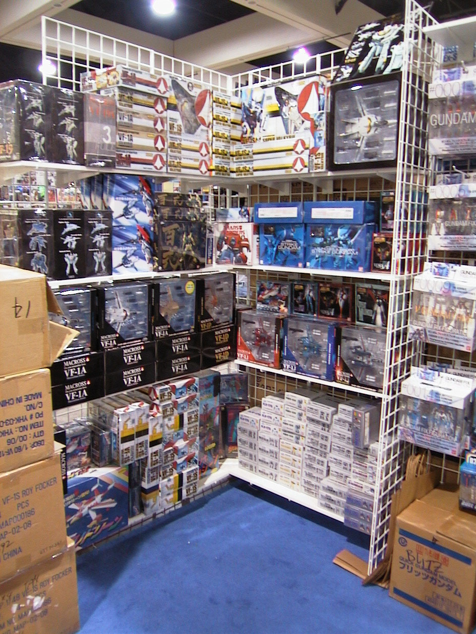 4600 T-shirt booth King Roach Booth with DVDs and some smut Anime Pavillion - Steve's store. The usual Taiwan knockoff CDs, but he had a few cool posters his pile. Macross booth - at the end of the row, a guy had a big whack of Macross kits. The also has a Dan Cougar one at $90 and a bigger one at $235 USD.