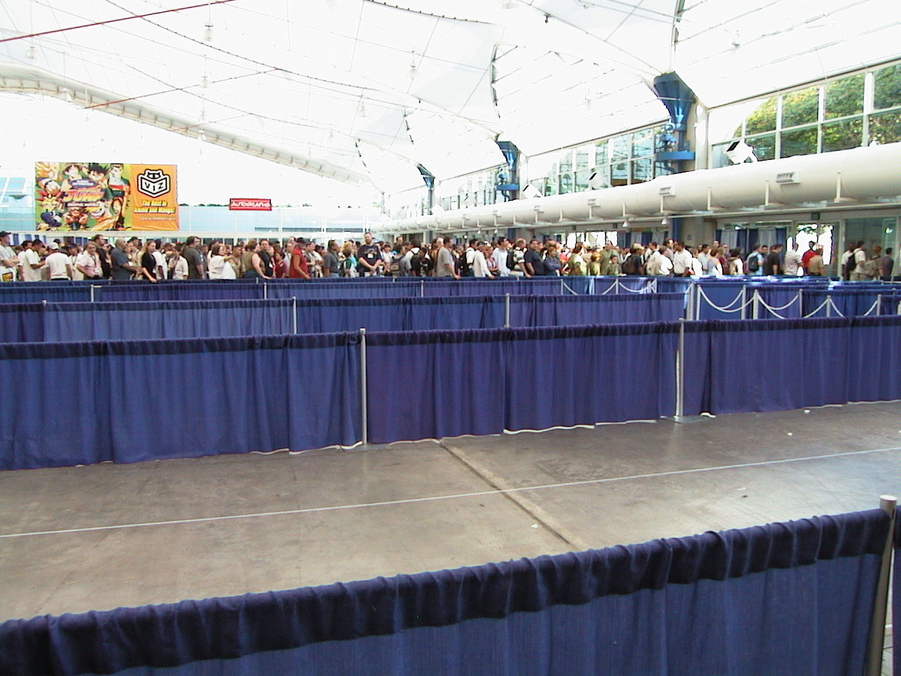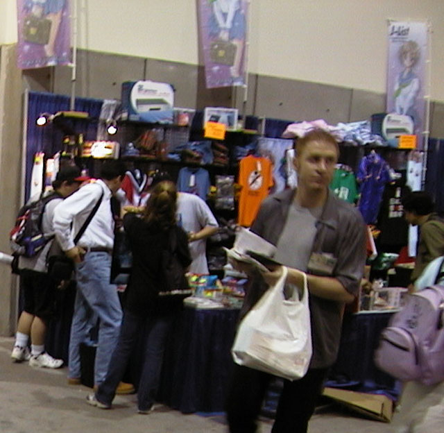 3200 Viz - a really boring booth for the most part,, almost all manga Bandai - big theater you can watch about 10 minutes of Bandai AMVs Spam and they will give you a free Witch Hunter Robin T-shirt. Tokyopop - lots of sneak preview manga, demos of the Initial D card game and the Initial D PS2 game. Dreamwave - big display of Transformers Xena booth - lot of paintings and pictures |