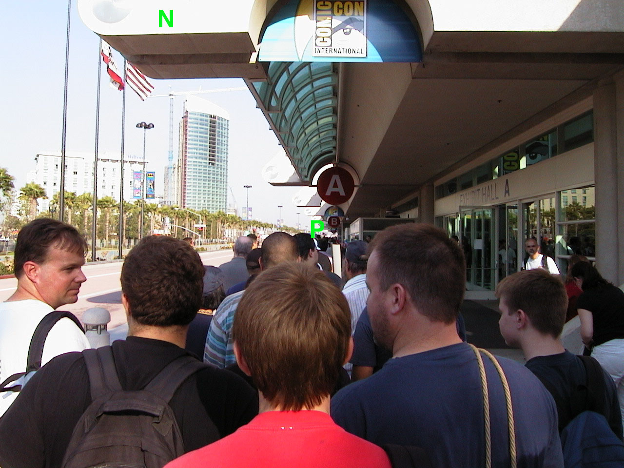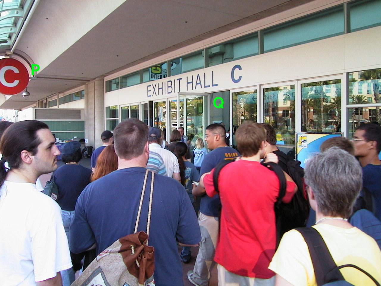 to exhibit hall C, marked P |
