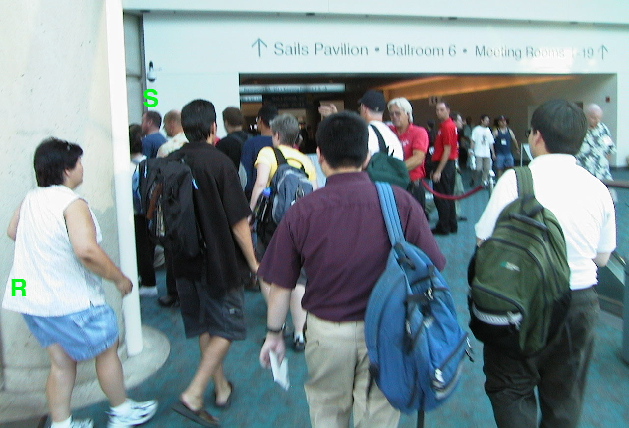 line up to get your badge |
