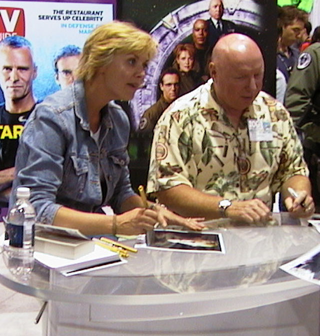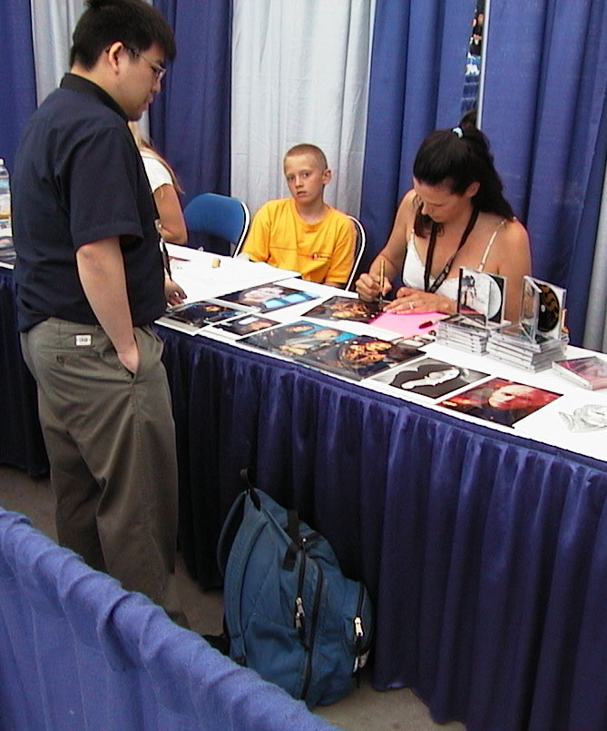 Other people who just showed up include Carter & the General from Stargate SG-1. At another table, the two members of Puffy,, showed up to promote their North American tour. Gabrella from Xena also made a brief appearance. |