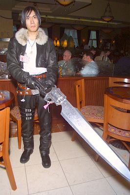 I have built costumes that require accessories. I made a Five Stars Stories Mirage Knight outfit that used a sword. However, it was really annoying carrying that stupid thing around. Sure it was light but it got in the way when I was using the elevator. It was a hassle when was looking through the booths in the dealer'ss room. I kept putting it down when I rest and when I sit down and when I was sitting in a line up. Now, why would you want to amplify your problems by making it bigger? And just a little bit bigger, BUT much much bigger! I thank www.afansview.com for these pictures, since I was too lazy to take pictures of some of the cosplayers. But here are the ones I remember seeing.