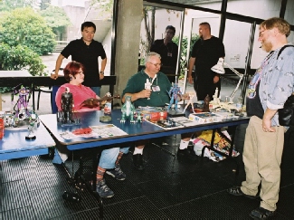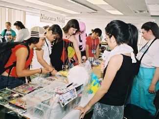 Stupid move number three, Heiu, who was in charge of the dealers room, disappeared off the SFU hill at around 10:00am to go pick Vince up. What the hell was that? That lazy bum couldn't take a bus? The goof ball isn't even staff or volunteer staff, although, he did help out a bit here and there. If the person was like Rune Sasaki or something, I would understand but this is just a friend you made a decision in poor judgement with allocation of time. You simply can't be in an important situation as setting up the dealers room and not be there because you are acting as someone's taxi cab. I blame Vince for being so stupid to force Hieu to give him ride (take the bus you idiot), and I blame Hieu for not thinking of his convention responsibilities. In the meantime, dealers were arriving looking to set up, dealers rooms were not unlocked, nobody in dealers room knew what to do. Volunteers were arriving for their pre-booked shifts, but they ended up standing around when they could be helping vendors unload and set up. This was bad. This was not a cool move.