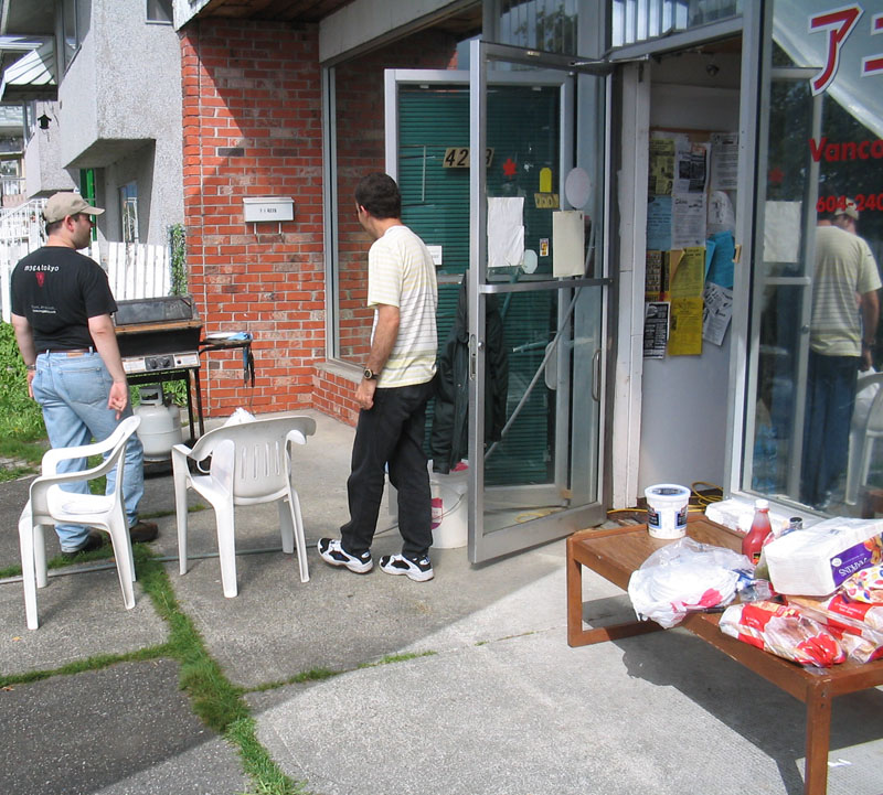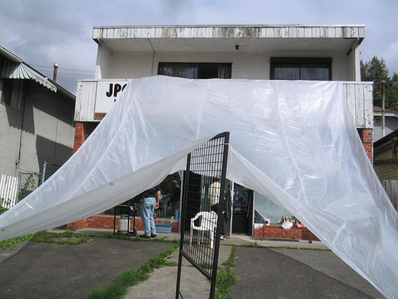 It was scheduled with a 60% chance of rain, but we went ahead rain or shine. We got a huge plastic tarp and suspended it from the balcony railings from above. So we where ready for the rain, which never came.