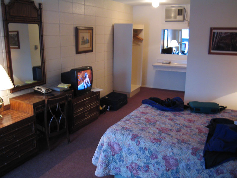 And the stupid thing is, this motel is $50 a night, $5 cheaper than the other two. Nice rooms, no smell, fridge and microwave and coffee maker. Very good deal. |