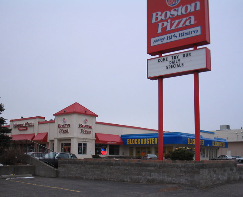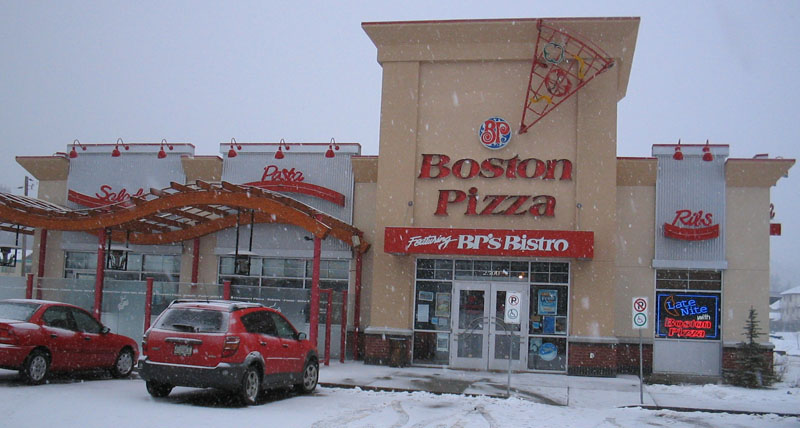 Here is the new Boston Pizza. It use to be in that little plaza with the arcade beside McDonalds in Spruceland. Well, it is by itself now on the Mohawk side of the McDonald now.
