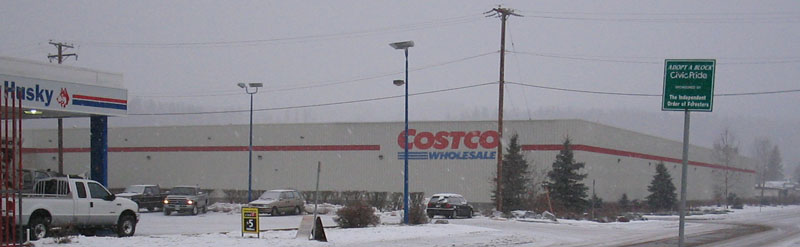 So today I decided to walk out and find the huge box stores. Everyone I talked to said it was WAY out there on the highway. So I prepared and hiked it out there. It turns out it isn't far at all. You simply walk out to the end of Pine Centre, walk past the Golf Course and the baseball diamonds and then you are there. First store, Real Canadian Stupid Store.
