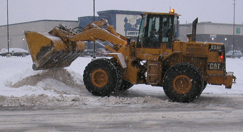 Behind the grader trail is a FE Loader. They used this to clear off all the snow from the entranace ways and driveways.