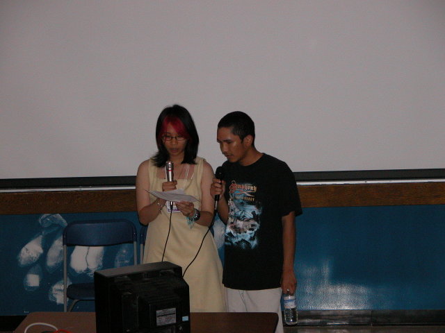 I have had some good feedback about the karaoke room. It definitely made the difference for a many con-goers on a what normally would be a dull Friday night or a nice late night cap for Saturday night or even an afternoon jaunt on Sunday. Sure, I will always have complaints about room accoustics, audience participation, and of course room ventilation. But this is SFU and not a whole lot can be done with a bomb shelter turned into a school. I am glad that I was able to create some good memories for some people and make their Anime Evolution 2005 experience more enjoyable and more entertaining. I look forward to taking account to several issues we had this year about equipment and song logistics and incorporate them for next year. |