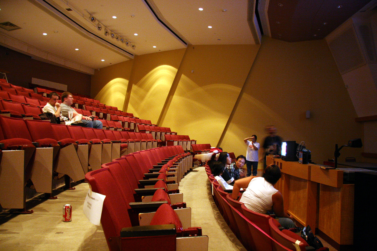 | Last year the Karaoke Revolution game was well played and almost always had a crowd huddled around it. So this year, it was no surprise that first panel slot on Friday, the room was near capacity at 130+ seats. Many spectators were reluctant at first to try it out, but after my performance of "Beat It" from Michael Jackson, they quickly gained some confidence to come forth.