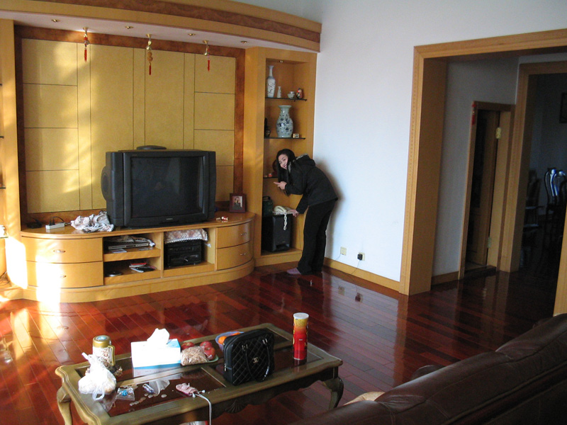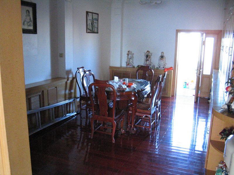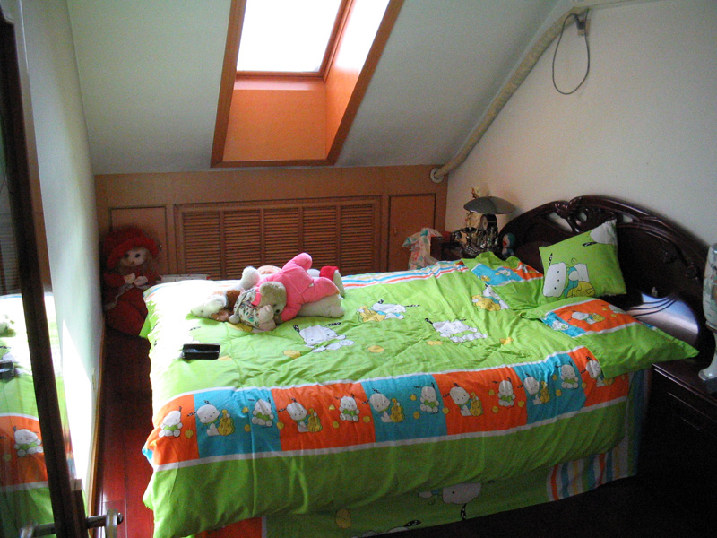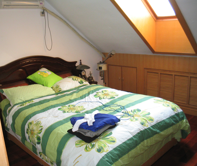 So this room ended up being my bedroom. Very nice hard wood king size bed. If I had any beefs with this set, I would have to say that the bed feels like I am sleeping on a sheet of plywood. Also, you notice there is no curtins on the window. Also on the nightstand is a real annoying analog clock that ticks loud.
