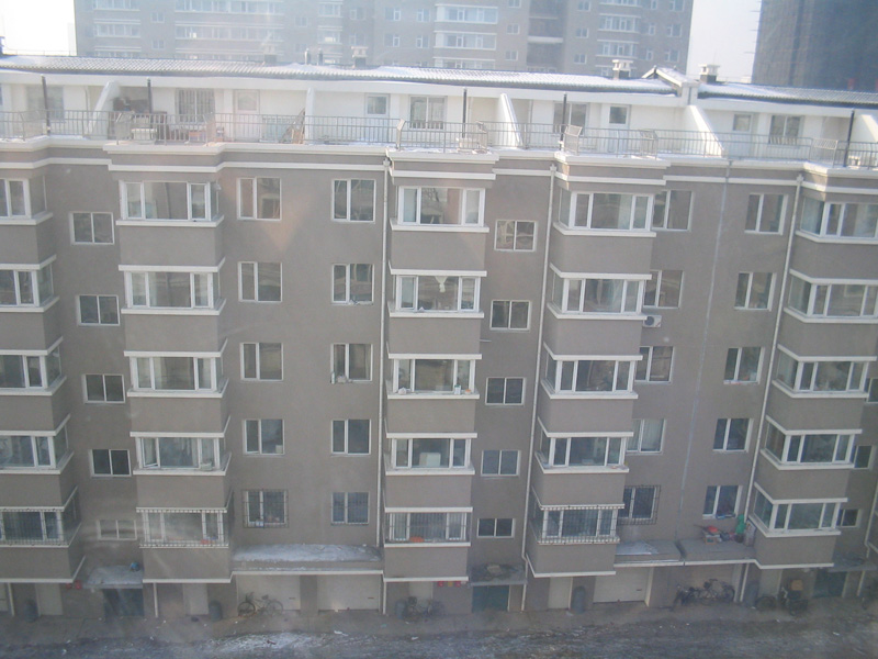 A shot from the window showing the building next door. Relatively, new looking compared to the others in the neighbourhood.