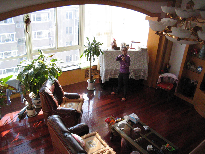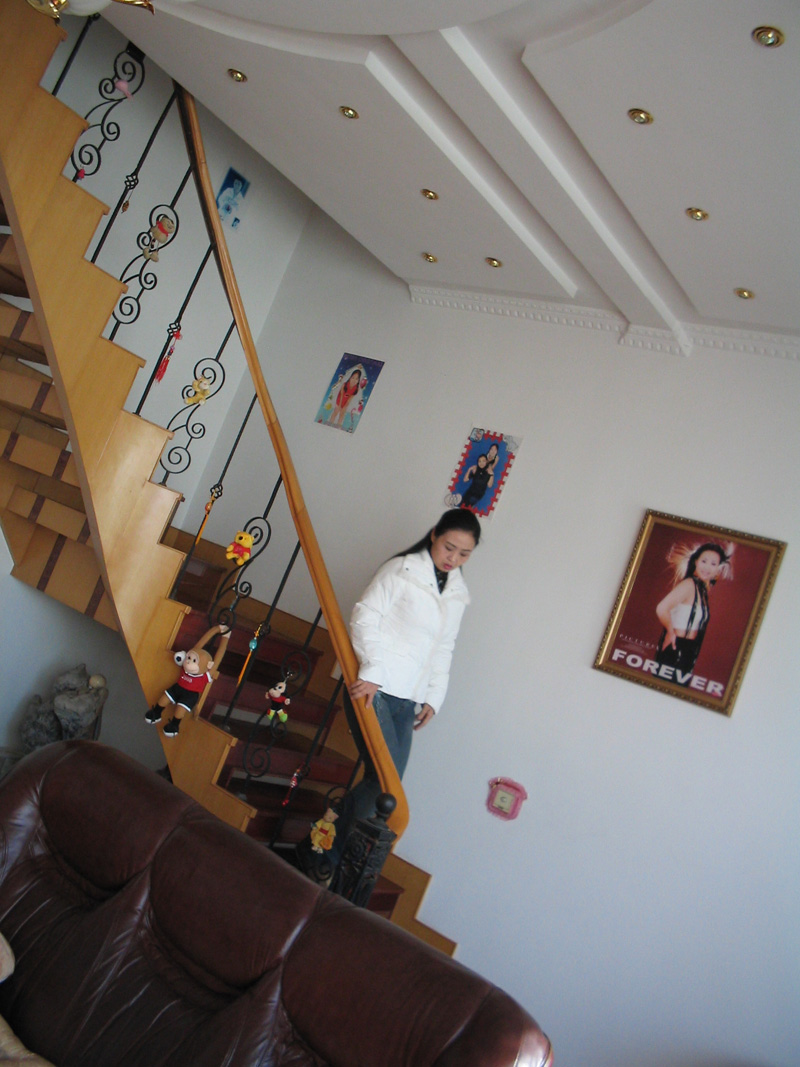Ami walking from upstairs bedrooms to the living room. Notice her picture on the wall.