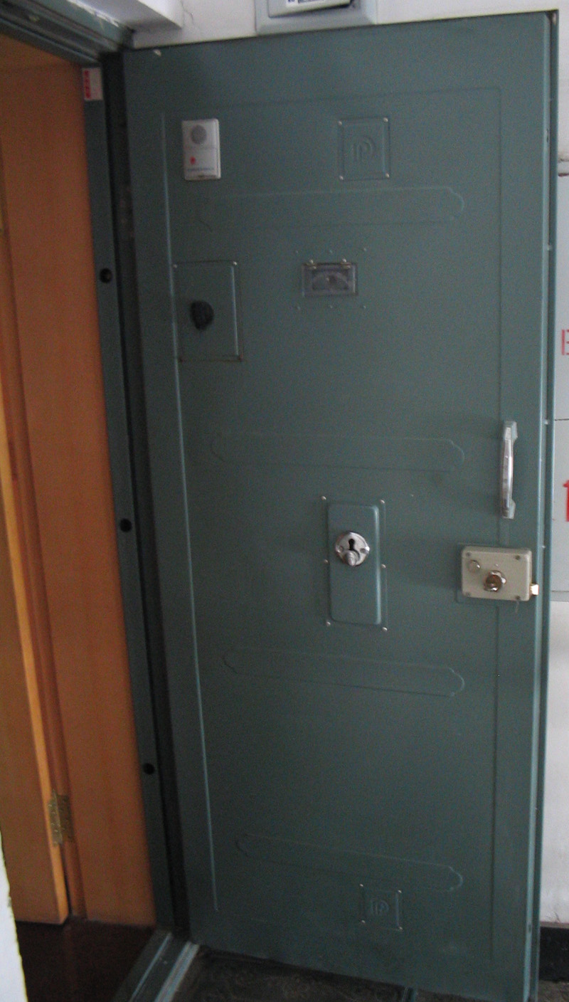 There is a double tumble locked steel door for the one entrance into the appartment. Just inside the door is your normal wooden door.