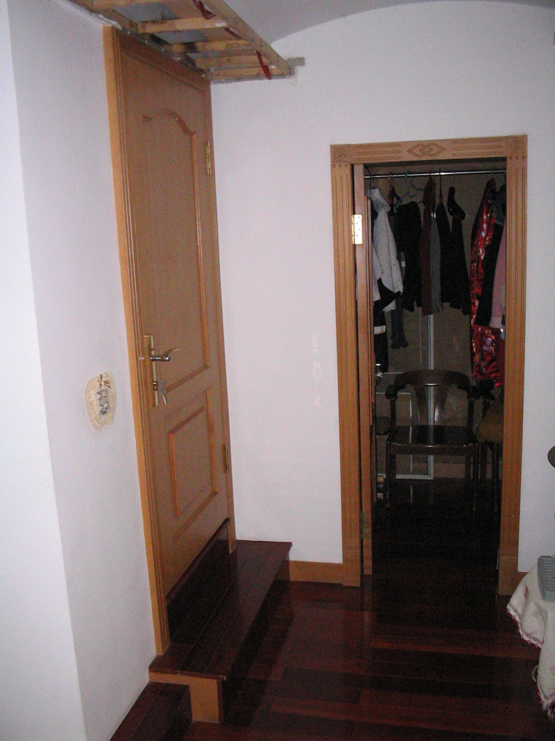Hallway upstairs. A walk in closet and the door that leads to the patio.