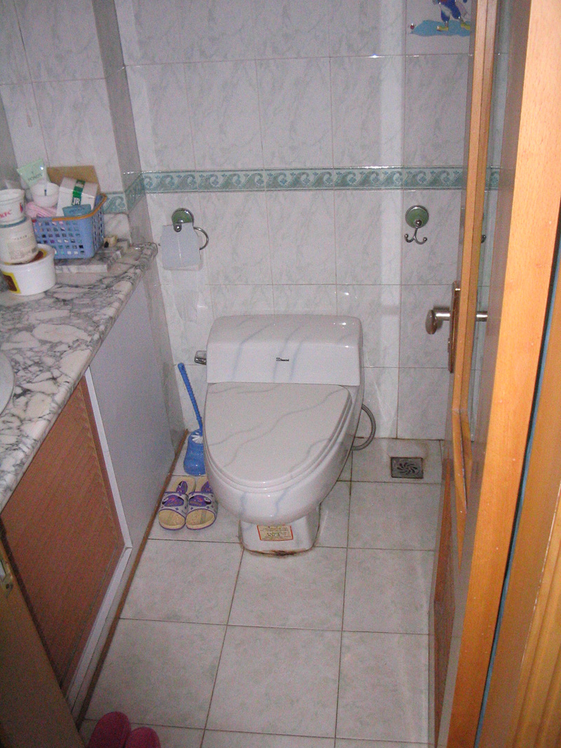 The rest of the washroom. Notiee that it is all tiled wall, floor and ceiling.