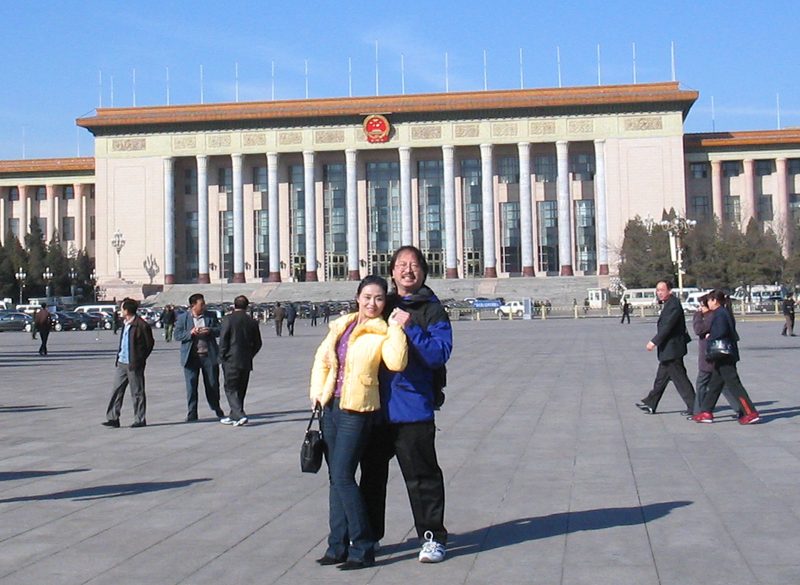 To the west is Zhongshan Park, and the People's Museum. Note the Beijing 2008 Olympic banner.