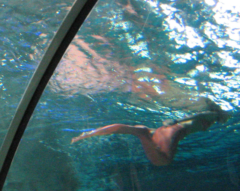 Watching the fish, manta rays, or even the mermaids from this underwater tunnel is pretty cool. You get the see the undersides of a manta ray as it skims by.