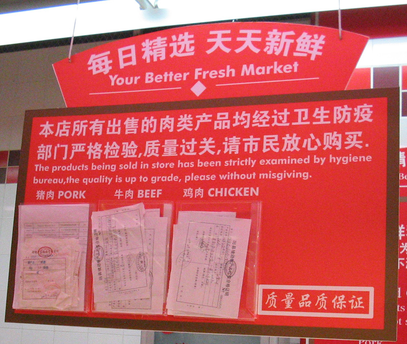 While shopping at Carre Four, here is the sign right by the meat department. Check out the great English grammar.