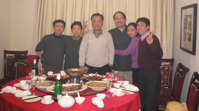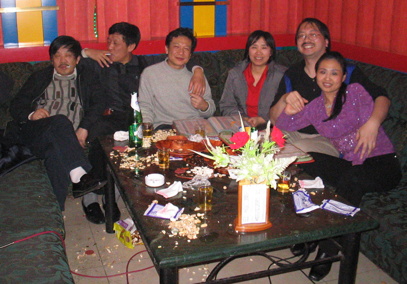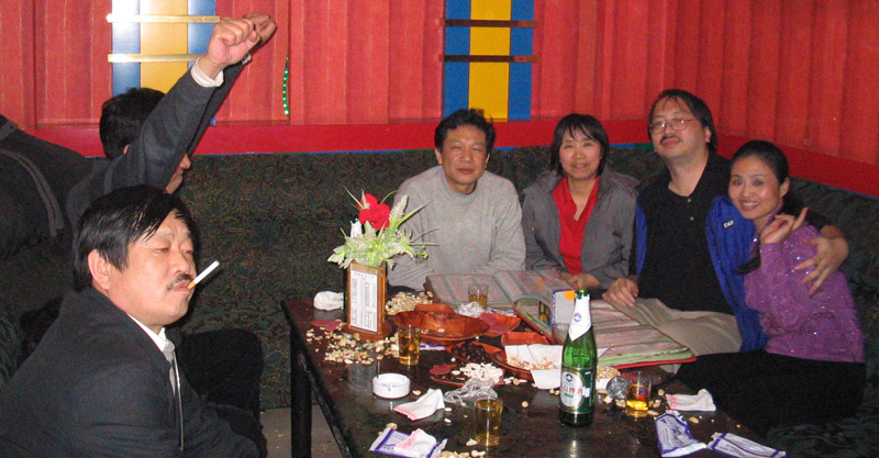 Dinner with the former Mayor and his wife (centre) and two other of her government co-workers (on left and right). The one on the left is the improv pro.