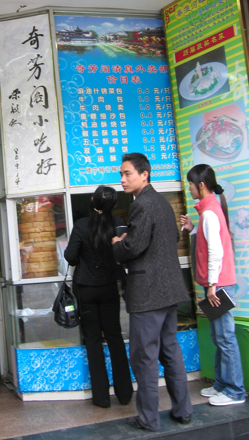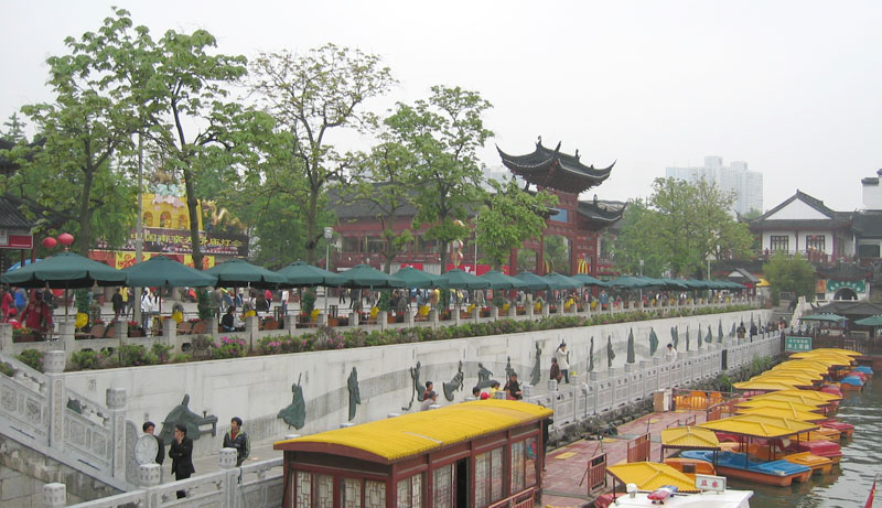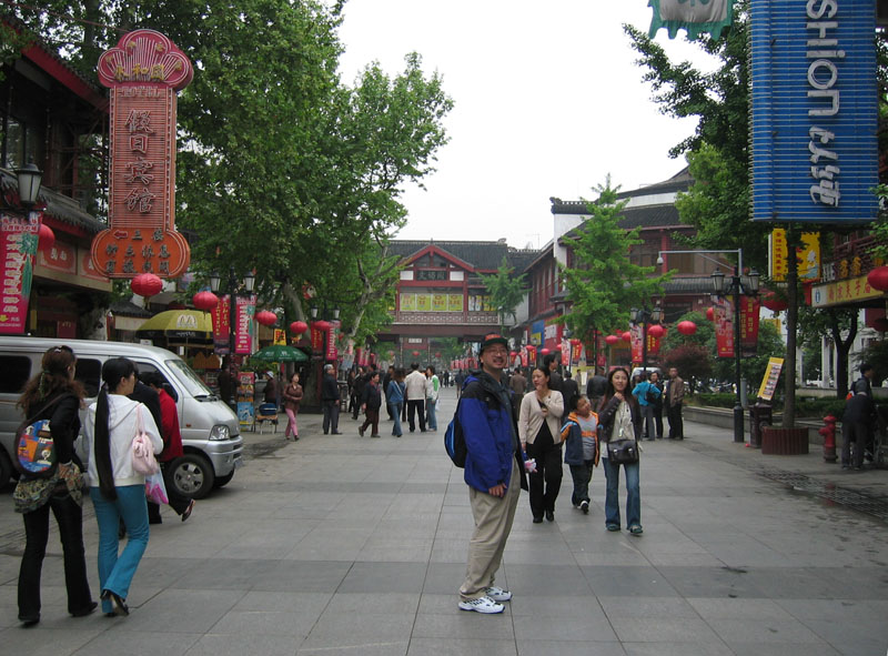 The first destinatation was the Fuzi Maio (Confucian Temple) shopping district in Nanjing City. It is by a famous Qinhuai River and Confucian Temple on the north bank. It is also the same place we went to during our rainy night but of course it looks much different in the daytime than it did at night. We now see all the restaurants that actually did serve that duck that we were looking for yesterday. It basically goes to show you again that the local shops can be a horrible place ask for directions. Well, unless you buy something from them.