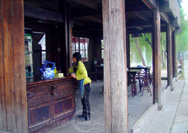 Fanglu Pavilion (Pavilion of Visits to Lu) suppose to be the best teahouse in Wuzhen. The name comes from a meeting between owner Lu Tong and The Patron Saint of Tea of Tang Dynasty, Lu Yu. After being saved from poisonous leaves, Lu Yu taught him the ways of the tea. We did stop here to buy some rather sticky pastries to eat. They were like the stuff you make the red bean cakes with except without the red bean. Real plain but I suppose if you were having tea, why not.