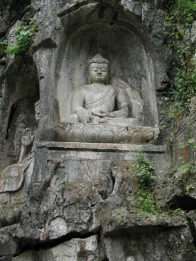 The entrance to the entire area which is referred to as Peak Flown from Afar (Feilai Peak) stands in front of Lingyin Temple. An Indian monk named Huili, was so surprised to see the peak he wondered aloud "When did peak come flying all the way from India to this place?"