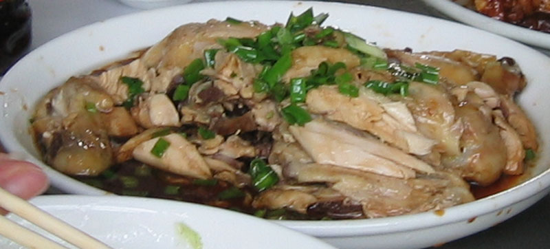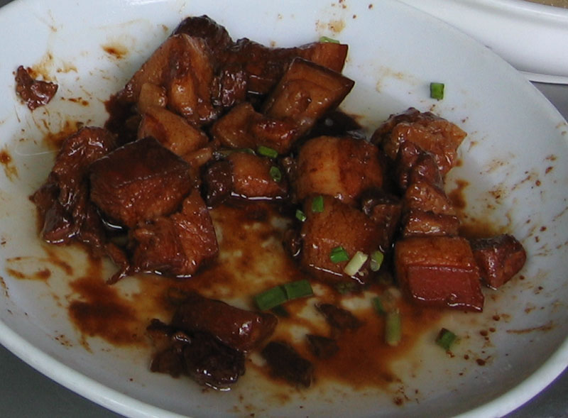 Pork. The usual fatty and oily pieces of pork right near the skin.