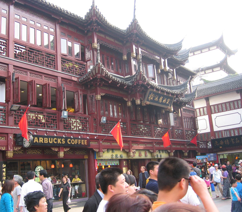 We are now back in Shanghai again. We are heading to another shopping type district, Xiangyang Road Market. It is known as Fashion Street because it was the home of the Huating Road Clothes Street. It is a place that has many old and famous tea houses, restaurants and antique shops. The most disturbing thing is how much Western influence and money is coming into this area. As shown below, it is bad enough we have Starbucks Coffee beside the traditional Chinese tea houses, but out in the street market, there is a random assortment of foreigners trying of flog off their wares too. They obviously have some grasp of Chinese as well as the knowledge of jack prices up, and flogging off bootlegs. It is just a sad state of affairs. I just hope that it doesn't turn out to be like Chinatown in San Francisco, where it seems like 50% of the stores are not even owned/run by Chinese people.