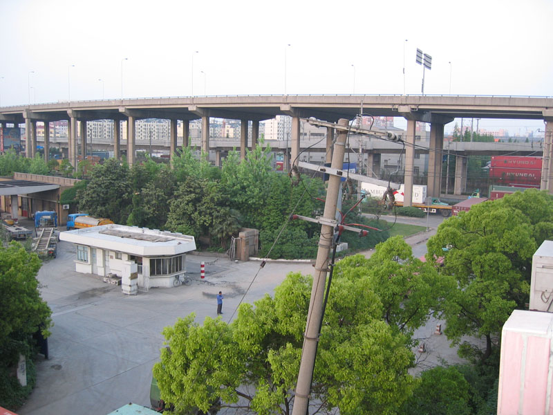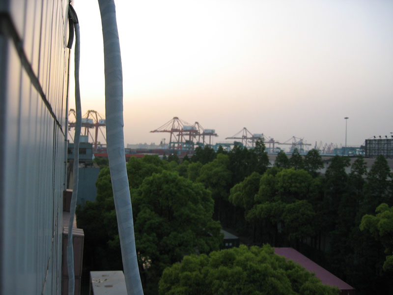 After the fashion district, we headed to the hotel by taxi, while the rest of the group went to the Shanghai Urban Development Building. We went there already on our first day. Our hotel was another in the middle of industrial district hotel. As shown in the last pictures, it is so close to the shipyard, and right beside the expressway. The trucks are roaring by all night. I will also note that the windows are not double sealed units, there are two sets of these windows, to make a 4 paned window set. And that dulls it down to a quiet roar...