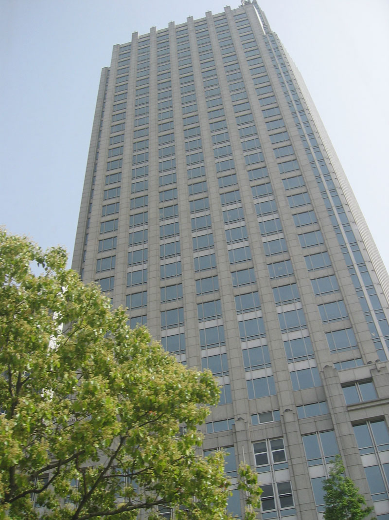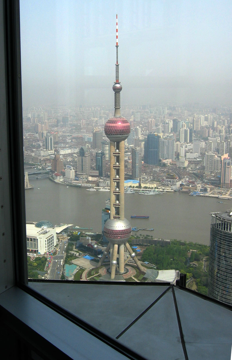 Really tall Jin Mao Tower. It stands 88 stories, 420 metres high.