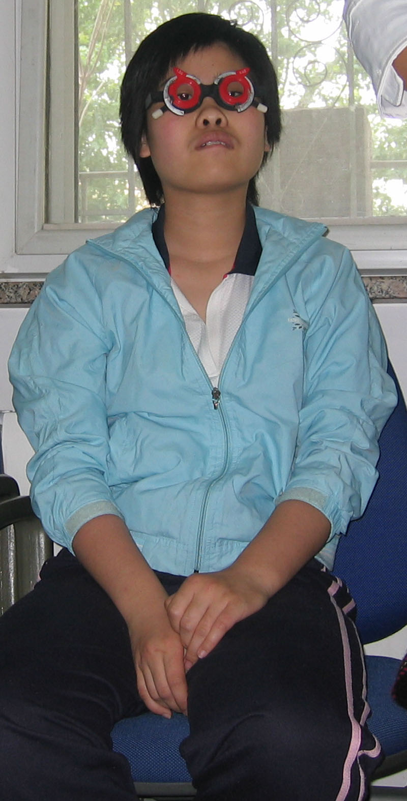 Their eye chart is also easy to read too. It is the letter "E" flipped in the four directions to make "W" and "M" and the backward "E". So it was easy to just point which way the E faced. Now, the problem came when testing for asigmism, which one was better or was it the same. That needed Ami to help me out.
