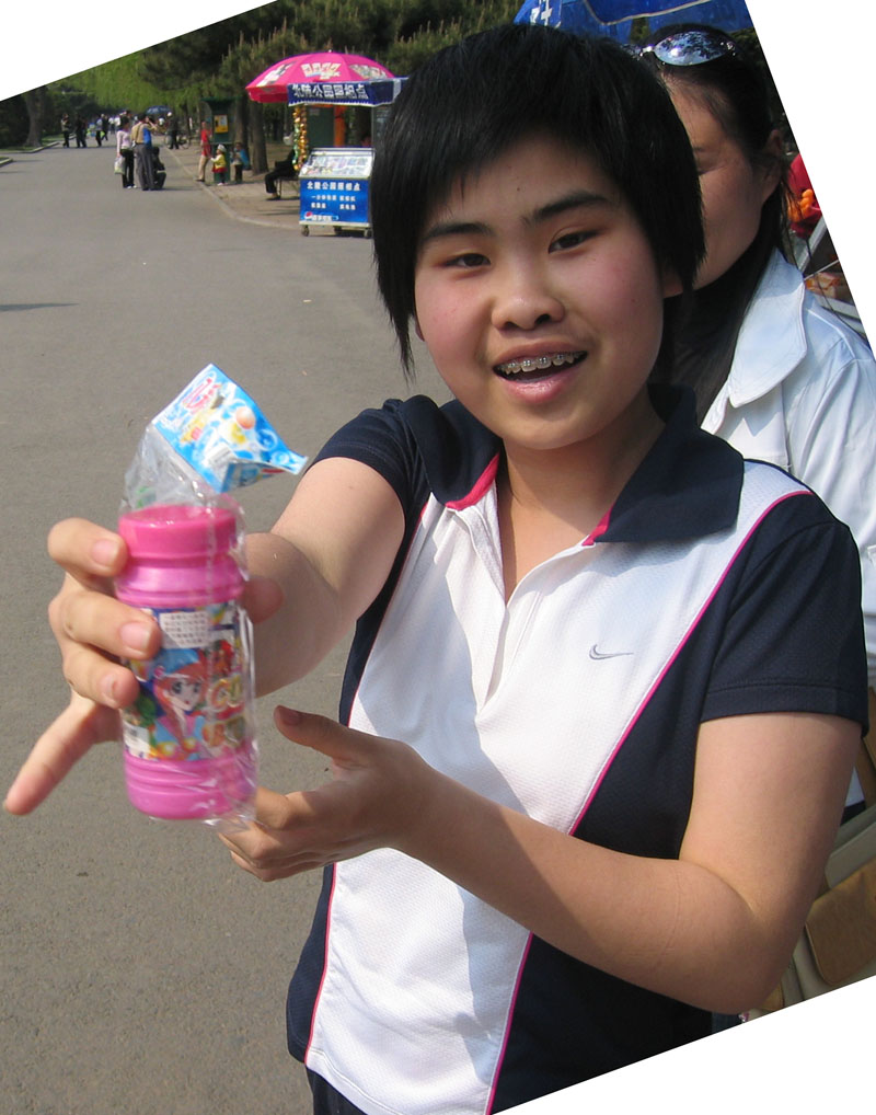 Alexanderia still had her bottle of bubble juice, so she pulled it out on the walkway home.