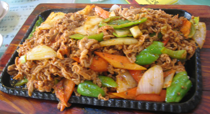 Beef stir fry like thing with green peppers. Not bad but it is like teriyaki beef, it is a real shredded.