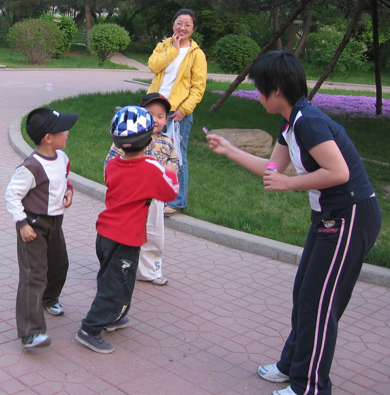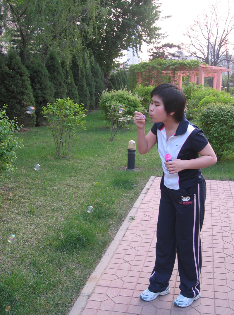 We encountered some small kids in the yard. They went nuts chasing after the bubbles to pop them. She was stuck her for bit making bubbles.