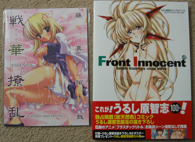 Satoshi "Breastman" Urushihara's book for "Front Innocence" which is a must. The second item was a smut dojinshi from one of my favourite artists, Essentia, which was a Gundam Seed one with the princess getting bobo'ed by Char.